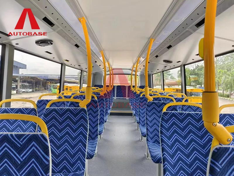 A: Ang 12 metrong purong electric double-decker na bus ay nag-aalok ng kabuuang 82 fixed seat + 1 driver's seat. Hinahati ang mga ito sa pagitan ng 55 na upuan sa itaas na kubyerta para sa malawak na tanawin at 27 na upuan sa ibabang kubyerta. Kasama rin dito ang 2 natitiklop na upuan para sa kakayahang umangkop at 4 na itinalagang priyoridad na upuan upang ma-accommodate ang mga pasaherong may mga espesyal na pangangailangan.