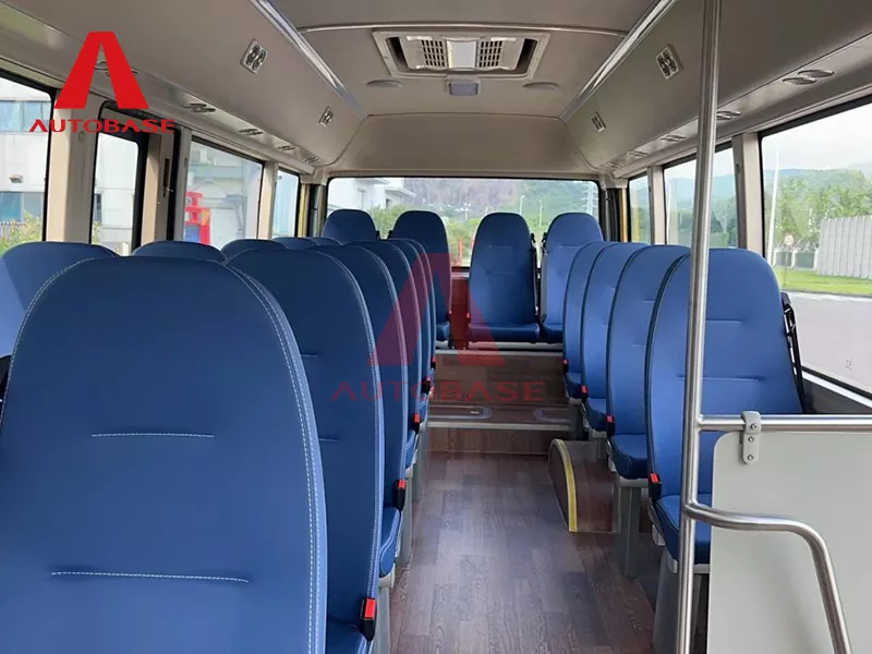 A: Ang bus ay may compact ngunit maluwag na disenyo na may kabuuang haba na 7,250mm (7.2m) at lapad na 2,240mm. Nagtatampok ito ng 2+1 seating layout na may kabuuang seating capacity na 22 pasahero, kasama ang driver.